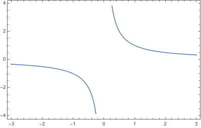 {Plot[1/x, {x, -3, 3}, PlotTheme -> "Frame", ImageSize -> 250,