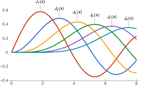Table[Callout[BesselJ[i, x], BesselJ[i, x], Above], {i, 1, 6}], {x,