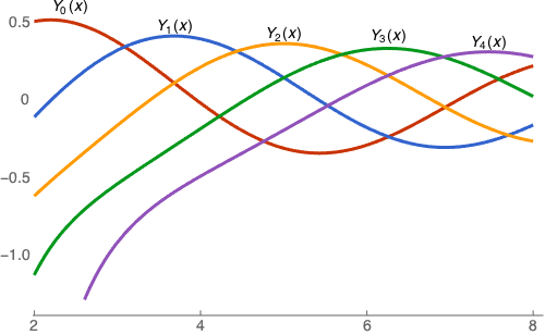 Table[Labeled[BesselY[i, x], BesselY[i, x], Above], {i, 0, 4}]], {x,
