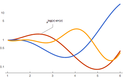 LogPlot[{Callout[x^(Log[x] Sin[x]), x^(Log[x] Sin[x]), {3, 3}, 2.5],