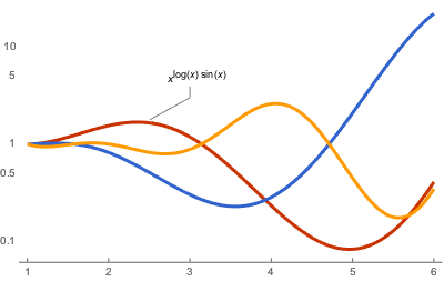 LogPlot[{Callout[x^(Log[x] Sin[x]), x^(Log[x] Sin[x]), {3, 3}, 2.5],