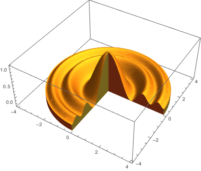 Plot3D[Cos[x^2 + y^2]/(x^2 + y^2 + 1), {x, -4, 4}, {y, -4, 4},