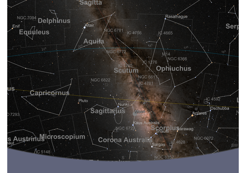 Visualize cenas astronômicas em diferentes projeções de mapas. Escolha fundos coloridos simples ou use fundos fotorrealistas para dar contexto às posições astronômicas precisas, seja especificadas manualmente ou calculadas para qualquer local e data.
