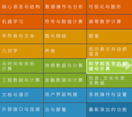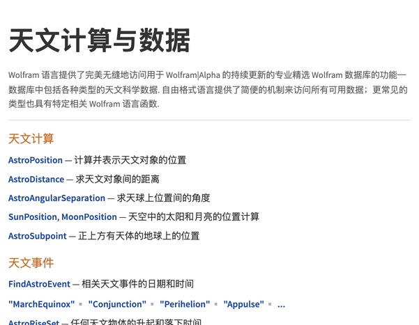 Wolfram 天文学是 Wolfram 语言的一个组成部分。整个系统包含了六千多个内置函数,涵盖了计算领域的方方面面,所有内容被精心集成在一起,相互支持,完美地结合为一个整体。