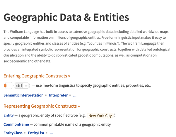 Wolfram Geography is an integrated part of Wolfram Language. The full system contains over 6,000 built-in functions covering all areas of computation—all carefully integrated so they work perfectly together.