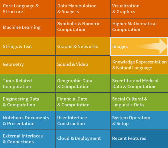 Wolfram Image Computation is an integrated part of Wolfram Language. The full system contains over 6,000 built-in functions covering all areas of computation—all carefully integrated so they work perfectly together.