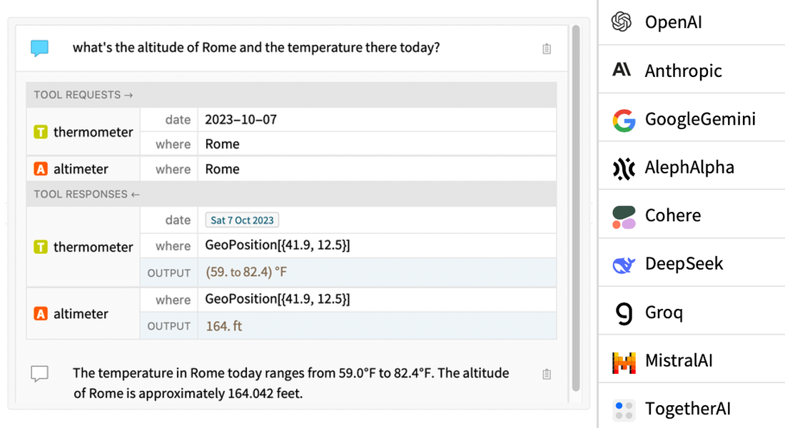 Predict ▪ Classify ▪ ActivePrediction ▪ SequencePredict ▪ Nearest ▪ FindFit ▪ FindClusters ▪ FeatureExtraction ▪ FeatureSpacePlot ▪ FeatureImpactPlot ▪ AnomalyDetection ▪ DimensionReduction ▪ MissingValueSynthesis ▪ LLMFunction ▪ LLMSynthesize ▪ ImageSynthesize ▪ ChatObject ▪ LLMPrompt ▪ LLMTool ▪ LLMConfiguration ▪ NetModel ▪ NetTrain ▪ NetGraph ▪ LinearLayer ▪ ConvolutionLayer ▪ AttentionLayer ▪ ImageIdentify ▪ ImageCases ▪ FindFaces ▪ TextRecognize ▪ ImageGraphics ▪ TextSummarize ▪ LanguageIdentify ▪ TextStructure ▪ TextCases ▪ SpeechRecognize ▪ AudioIdentify ▪ SpeechCases ▪ SpeakerMatchQ ▪ PitchRecognize ▪ ChatEvaluate ▪ ChatSubmit ▪ LLMGraph ▪ LLMGraphSubmit ▪ LLMResourceFunction ▪ LLMExampleFunction ▪ LLMSynthesizeSubmit ▪ LLMPromptGenerator ▪ SemanticSearch ▪ SemanticRanking ▪ SemanticSearchIndex ▪ CreateSemanticSearchIndex ▪ UpdateSemanticSearchIndex ▪ SemanticSearchIndices ▪ LLMToolRequest ▪ LLMToolResponse ▪ GenerateLLMToolResponse ▪ $LLMEvaluator ▪ LLMEvaluator ▪ ServiceConnect ▪ ServiceExecute ▪ StringTemplate ▪ TemplateObject ▪ ResourceObject ▪ Authentication ▪ SystemCredential ▪ Environment ▪ SpeechSynthesize ▪ VectorDatabaseSearch ▪ CreateVectorDatabase ▪ VectorDatabaseObject ▪ AddToVectorDatabase ▪ VectorDatabaseObjects ▪ NetChain ▪ NetMeasurements ▪ NetPort ▪ NetPortGradient ▪ NetStateObject ▪ NetTrainResultsObject ▪ ThreadingLayer ▪ AggregationLayer ▪ SoftmaxLayer ▪ NetReplacePart ▪ NetInitialize ▪ NetTake ▪ NetAppend ▪ NetReplace ▪ NetFlatten ▪ NetEncoder ▪ NetDecoder ▪ ClusteringComponents ▪ ClusterClassify ▪ ClusteringMeasurements ▪ MeanShift ▪ NearestNeighborGraph ▪ Dendrogram ▪ ClusteringTree ▪ FindGraphCommunities ▪ CommunityGraphPlot ▪ ConnectedComponents ▪ FindGraphPartition ▪ FindClique ▪ FindKClique ▪ ImageForestingComponents ▪ WatershedComponents ▪ GrowCutComponents ▪ DistanceFunction ▪ ClusterDissimilarityFunction ▪ Weights ▪ PerformanceGoal ▪ CriterionFunction ▪ Method ▪ LocalModelFit ▪ KernelModelFit ▪ LinearModelFit ▪ NonlinearModelFit ▪ GeneralizedLinearModelFit ▪ LogitModelFit ▪ ProbitModelFit ▪ FittedModel ▪ Around ▪ BestFit ▪ FitResiduals ▪ ANOVA ▪ ParameterEstimate ▪ CookDistances ▪ Deviances ▪ AIC ▪ FitCurvatureTable ▪ DesignMatrix ▪ NominalVariables ▪ LinkFunction ▪ LinearOffsetFunction ▪ ConfidenceLevel ▪ VarianceEstimatorFunction ▪ DispersionEstimatorFunction ▪ FindFormula ▪ FindDistribution ▪