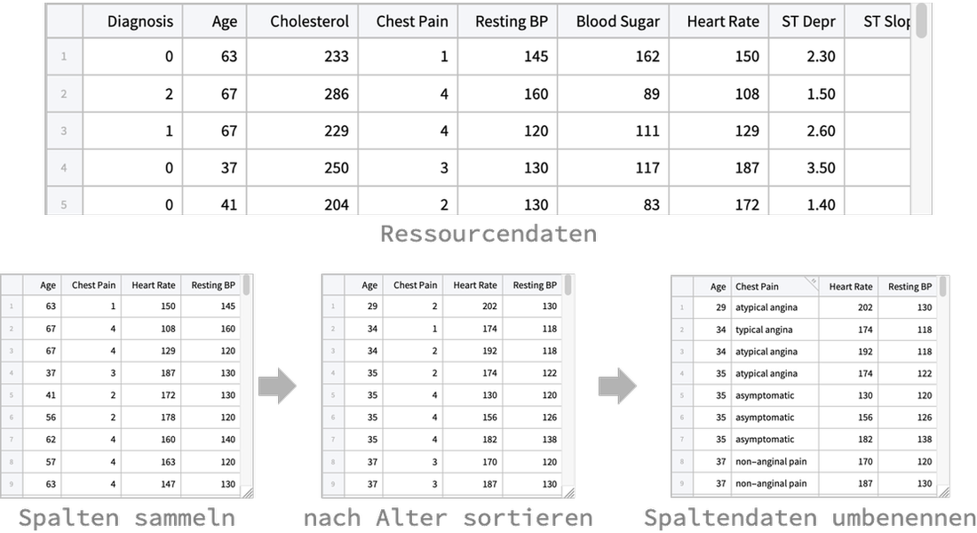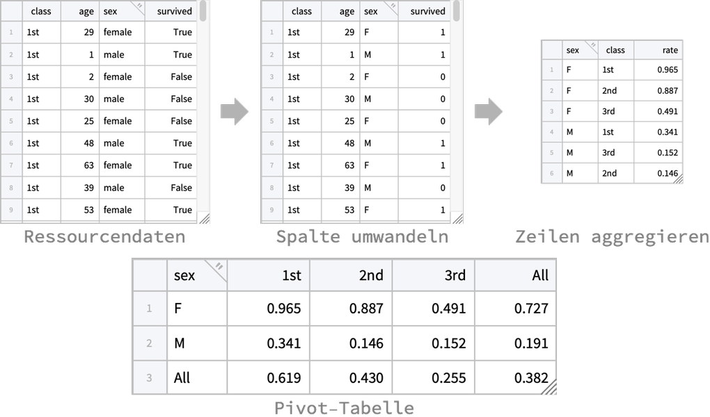 Verstehen Sie Daten in Zeilen und Spalten, um umsetzbare Insights zu kommunizieren. Ein unverzichtbarer Teil des kompletten Datenwissenschafts-Workflows mit integriertem Maschinellen Lernen und statistischer Analyse.