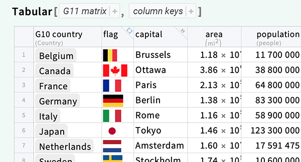 Wolfram Procesamiento de datos mediante Tabular es una parte integrada de Wolfram Language. El sistema completo contiene más de 6000 funciones incorporadas que abarcan todas las áreas de la computación, todas cuidadosamente integradas de manera que trabajen perfectamente en conjunto.
