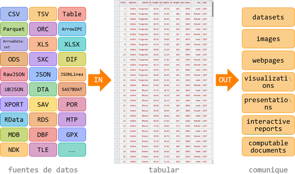 Reduzca la fricción en flujos de trabajo de ciencia de datos mediante la importación sencilla de estructuras de datos columnares, la representación eficiente de tipos de datos complejos y las potentes capacidades de análisis.