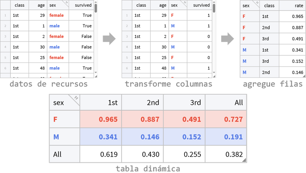 Reestructure, reordene, agregue y transforme las filas y columnas en otras maneras mediante funciones optimizadas que se escalan a datos de gran tamaño. Refine datos para hacer que la información y la comprensión sean obvias.