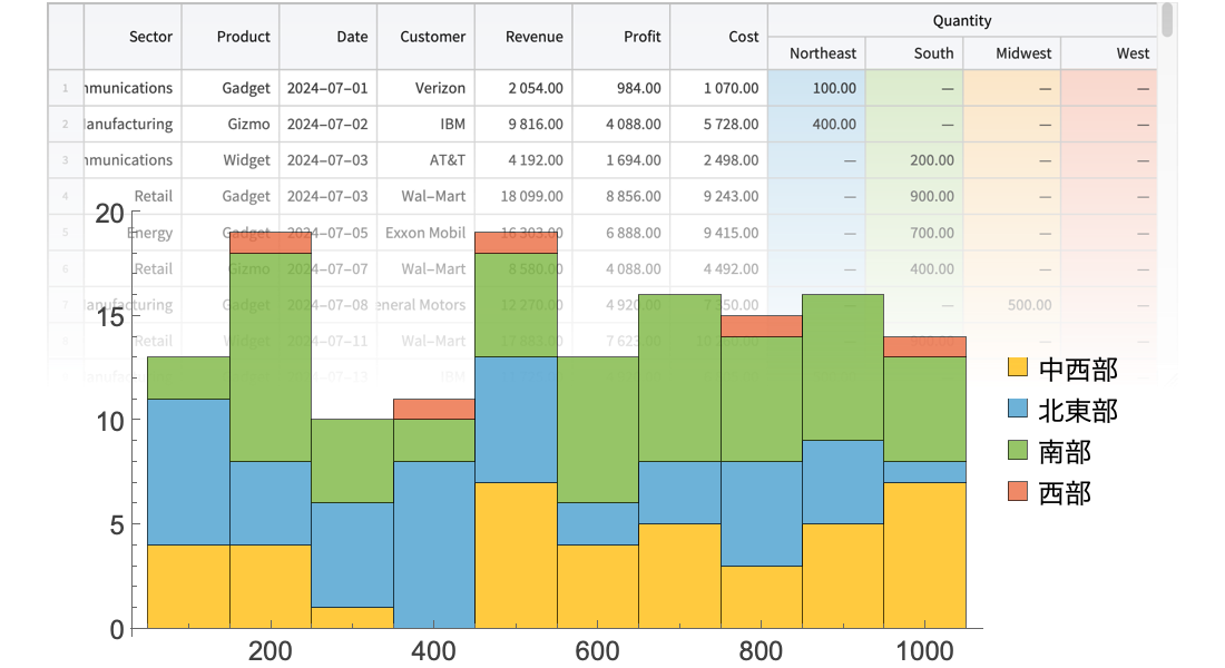 Wolfram 表形式データ処理は,Wolfram言語に統合されています.全システムに計算の全分野を網羅する6,000個を超える組込み関数が含まれており,そのすべてが綿密に統合されているため,完全に一体となって作動します.