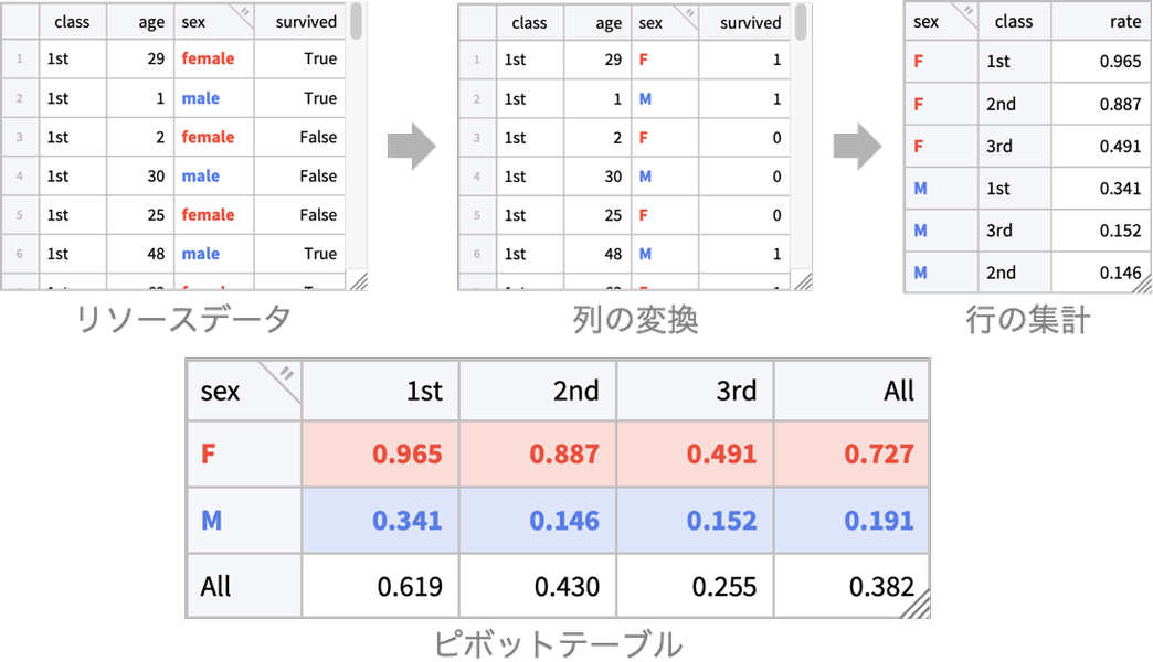 ビッグデータにも対応可能な最適化された関数を使って,行や列の整形,並替え,集計等さまざまな変換を行います.データを整えることで,洞察や理解をより明確にします.