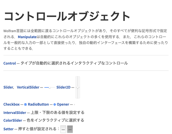 ユーザインターフェースに関するWolframドキュメント