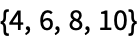 | Table[ f[n],{n,2,10,4}] | list of values with n going from 2 to 10 in steps of 4 | |
