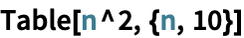 What does the { ...} (list) in Table[n^2, {n, 5}] mean?