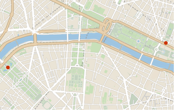 Show a 1-mile-radius disk around the Eiffel Tower: