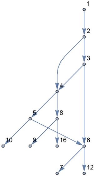 27.10Generate a graph by starting from 0, then nestedly 10 times connecting each node with value n to ones with values n+1 and 2n. »