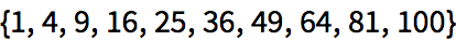 Use a pure function to generate a list of the first 10 squares: