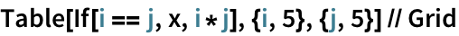 Array makes a multiplication table: