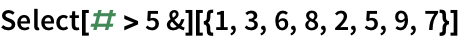 For each row, select columns whose values are greater than 5, leaving a ragged structure: