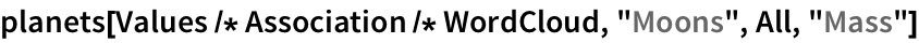 Here’s how to make a word cloud of names of moons, sized according to the masses of the moons. To do this, we need a single association that associates the name of each moon with its mass.