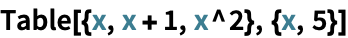 What does the { ...} (list) in Table[n^2, {n, 5}] mean?