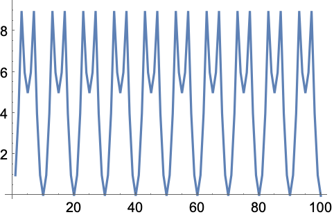 +6.6Make a list line plot of the last digits of the first 100 squares. »