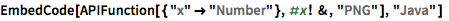 Mit EmbedCode können Sie Code erzeugen, um eine Instant API von einer anderen Sprache aufzurufen: