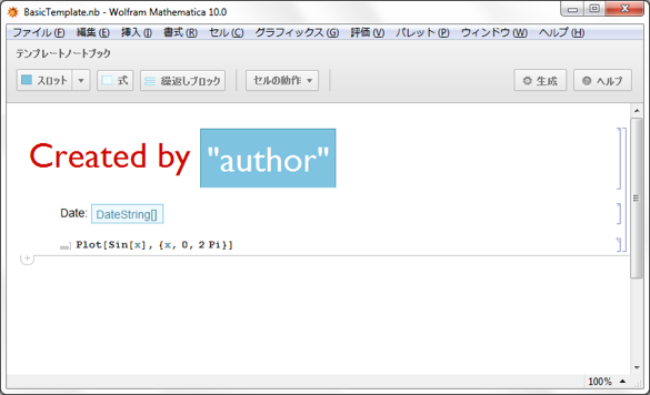 以下は著者名と計算された日付のスロットを含むテンプレートノートブックである.