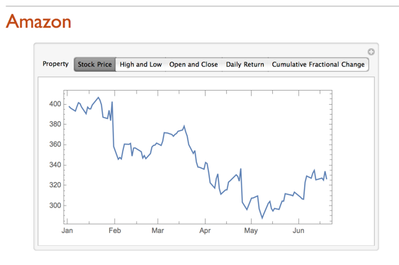 Der Amazon-Abschnitt des erstellten Berichts beinhaltet folgende interaktive Präsentation des Verlaufs von Amazons Aktienpreisen: