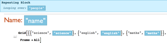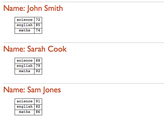 Realice un circuito o "loop" sobre datos estructurados para generar reportes de colecciones de entidades tales como estudiantes, clientes, productos o ensayos.