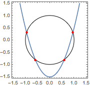 Ermitteln Sie die Schnittpunkte eines Kreises und einer Parabel.