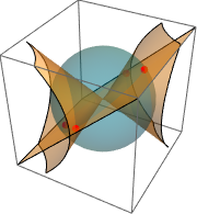Encuentre los puntos de intersección de una esfera, un plano y una superficie definida por