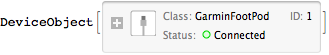 靴紐に取り付けたGarmin Foot Podと繋がったGarmin Forerunner 50スポーツウォッチとコンピュータの間のANT+接続を開く.