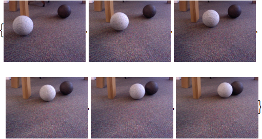 フレームレートを設定した後,コンピュータシステムに接続されたデフォルトのカメラからの連続する6つのフレームをキャプチャする.