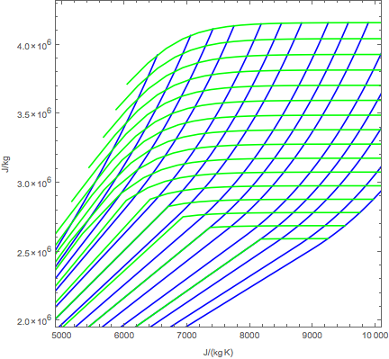 Erstellen Sie Mollierdiagramme mit den Parametern Luftdruck zu Entropie.
