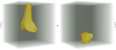 Transformações afim e de perspectiva estão disponíveis para alterar a distribuição espacial de um volume inteiro ou de seus componentes. Para demonstrar essa capacidade, os ossos do fêmur e da tíbia podem ser movidos, como em um movimento de flexão do joelho.
