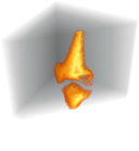 DistanceTransformは各前景のボクセルから背景までの距離を返す.骨の距離変換を計算して,その厚さを推定する.