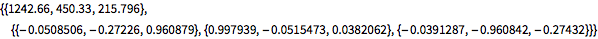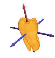 空間の立体部分の向きを求めるためには,その密度分布の二次中心モーメントを計算し,対応する固有ベクトルを導き出すことができる.次は,中心モーメントと立体の向きを計算するための短いスクリプトである.