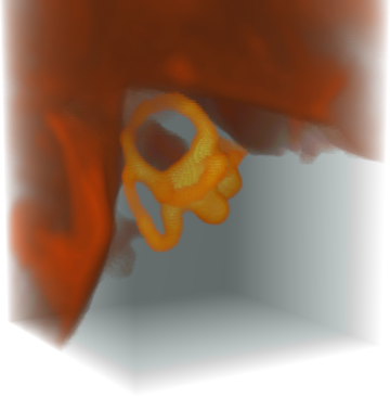 頭蓋骨に埋め込まれた蝸牛を可視化する.