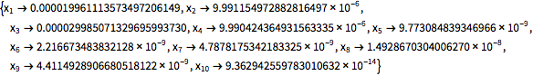 Chemische Reaktionssysteme, die ein Gleichgewicht erreichen, können normalerweise direkt als Polynomsysteme aus Gleichungen modelliert werden. Diese Probleme werden definiert durch Erhaltungs- und Reaktionsgleichungen. Das folgende Beispiel ist aus dem Bereich der Verbrennungschemie und modelliert das Verbrennen von Benzin in einer Brennkammer genau wie in einem Automotor. Das Ziel ist, herauszufinden, welche chemischen Elemente und Stoffe in der Brennkammer in verschiedenen Stadien vorhanden sind. Das System der untersuchten Reaktionen ist gegeben durch