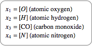 Los sistemas de reacciones químicas que tienen equilibrio típicamente se pueden modelar directamente como un sistema de ecuaciones polinomio. Estos problemas se definen por las ecuaciones de conservación y de reacción. El siguiente ejemplo es de una combustión química y modela la quema de combustible en una cámara de combustión, tales como en un motor de automóvil. La meta es determinar cuáles componentes y compuestos químicos están en la cámara de combustión en varias etapas. El sistema de reacciones que está siendo estudiado es dado por