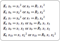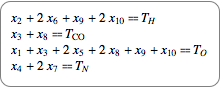 Si usted asume un sistema químico cerrado, las cantidades se conservan, lo que conduce a las ecuaciones de conservación mostradas en su notación química y algebraica.