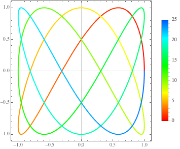ArcLength関数を使って, 横断する弧長に従って曲線全体に色付けする.