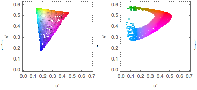 Diagramas de cromaticidade são muitas vezes utilizados para visualizar e compreender relações entre cores. ChromaticityPlot pode ser usado para exibir cores, imagens e espaços de cor nos diagramas de cromaticidade CIE 1931 e CIE 1976 UCS.
