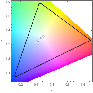 Visualize a cromaticidade dos iluminantes da luz do dia.