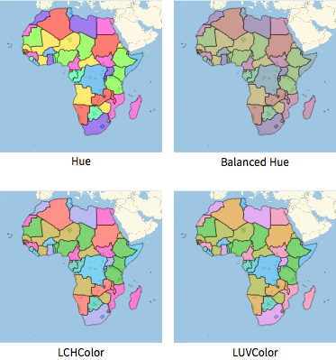 LCHColorとLUVColorはバランスの取れた陰影を表示するときでも,鮮やかさを保つことができる.