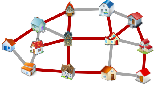 Ein Unternehmen möchte ein bestehendes Glasfasernetz auf ein neues Viertel ausweiten. Entlang bestimmter Strecken müssen die Glasfaserkabel unterirdisch verlegt werden. Das kann bei längeren Leitungen oder dort, wo die Glasfaserkabel tiefer verlegt werden müssen, teurer werden. Erstellen Sie ein Glasfasernetz, das jedes Haus zu den niedrigsten Gesamtkosten verbindet.