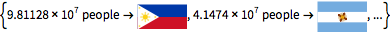 Cree un collage a partir de las banderas de los países que contribuyen al menos con el 0,2 por ciento de la población mundial.